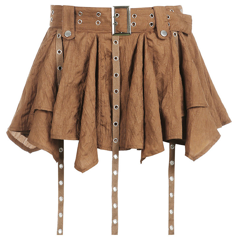 波西米亚度假风复古不规则下摆海边飘带高腰半身裙腰带小众短裙女