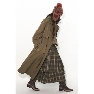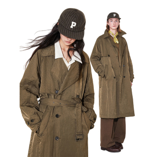 物理少年「秋叶肌理」双层系扣立领纯色风衣外套