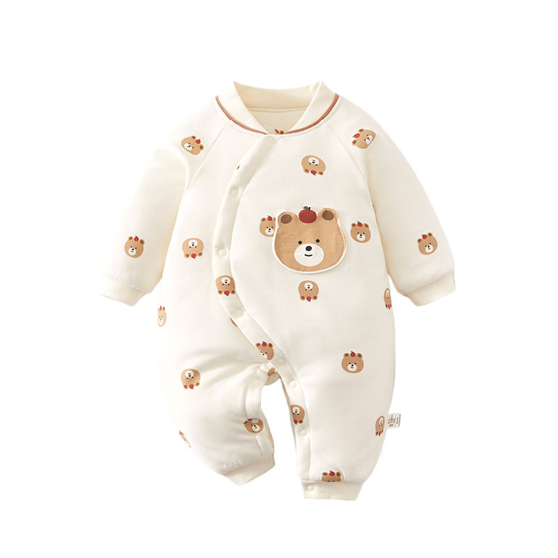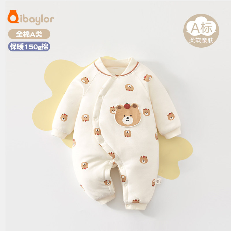婴儿连体衣秋冬季 夹棉保暖加厚150克棉男女宝宝衣服初生纯棉哈衣