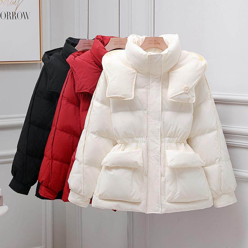 加厚宽松收腰外套红色 中长款 中款 羽绒服女小个子遮屁股2024冬新款
