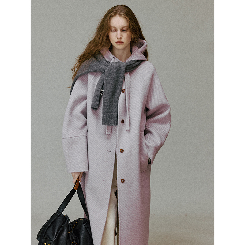 popchrio 女 设计感羊毛连帽双面呢大衣小个子灰色毛呢外套中长款