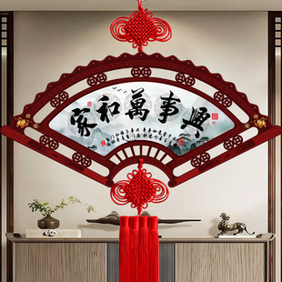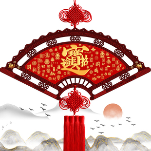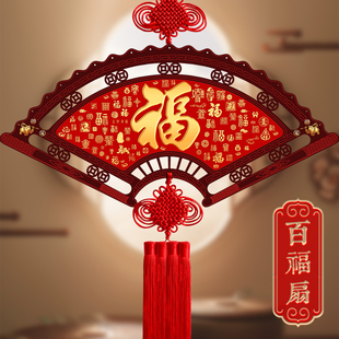 2025新款 饰 扇形中国结福字挂饰招财大号实木中国风挂件客厅玄关装