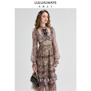 商场同款 连衣裙法式 春季 复古宫廷风长袖 蛋糕裙 新款 LULUALWAYS
