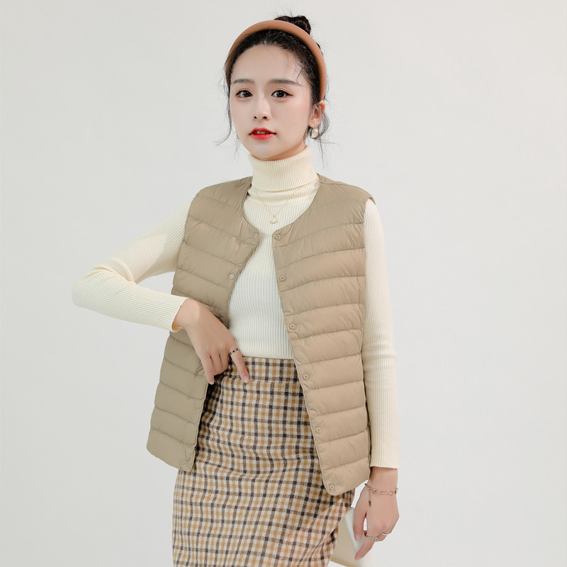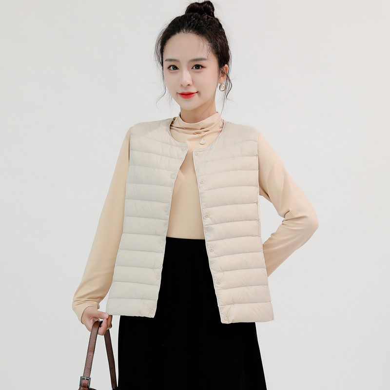 羽绒服马甲女2024秋冬新款 保暖背心 内胆圆领坎肩内穿无领轻便薄款