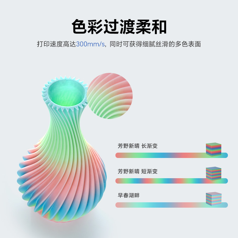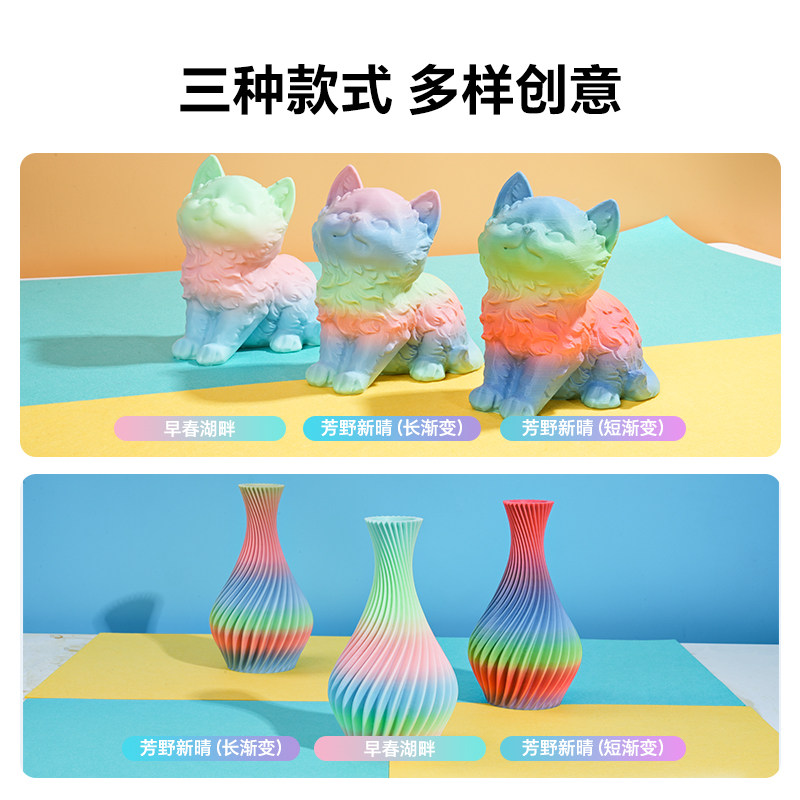 过度柔和色彩绚丽 彩虹渐变色 创想三维3D打印耗材Hyper PLA渐变高速打印耗材1KG