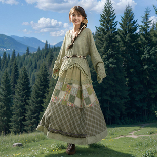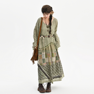森系裙子女装 森女部落波西米亚风套装 镂空流苏上衣女半身裙春新款