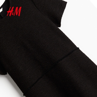 短袖 纹理圆领优雅修身 A字短裙1262628 连衣裙冬季 HM女装