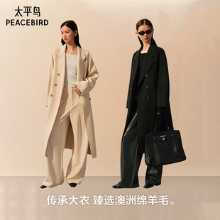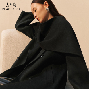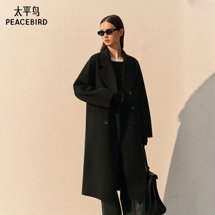 羊毛毛呢正肩大衣 西装 黑色双面羊绒外套女2025秋冬极简风经典 长款