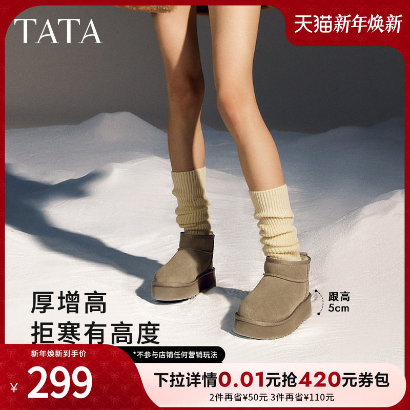 TATA他她面包靴毛毛厚底雪地靴女靴保暖加绒短靴子棉鞋 CDE04DD4