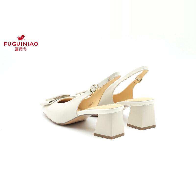 优雅羊皮粗跟包头女凉鞋 富贵鸟女鞋 时尚 新款 K400331K 2024夏季