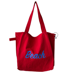 韩系ins字母印花尼龙单肩包休闲百搭便携抽绳帆布包大容量托特包