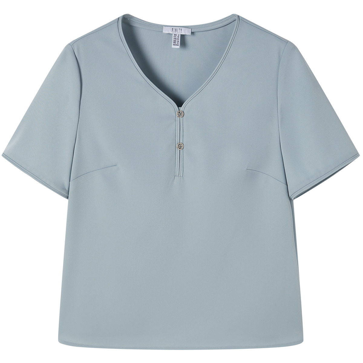 简约气质V领百搭纯色短袖 新款 上衣女 2025夏季 FINITY菲妮迪雪纺衫