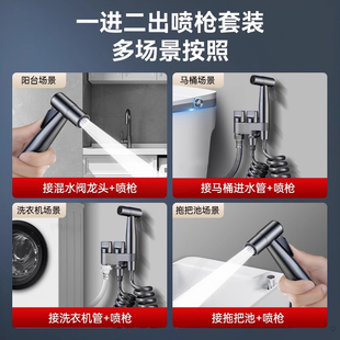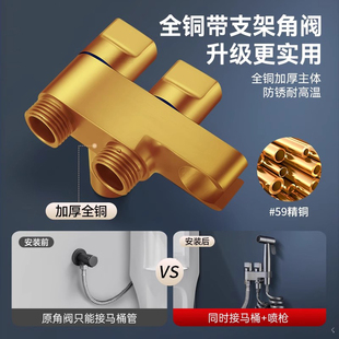 全铜马桶伴侣冲洗喷枪一进二出水龙头卫生间厕所角阀增压