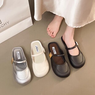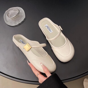 女2025春季 一脚蹬懒人鞋 新款 休闲时尚 平底豆豆鞋 软底舒适外穿单鞋