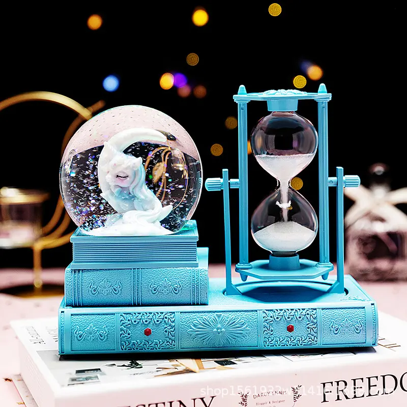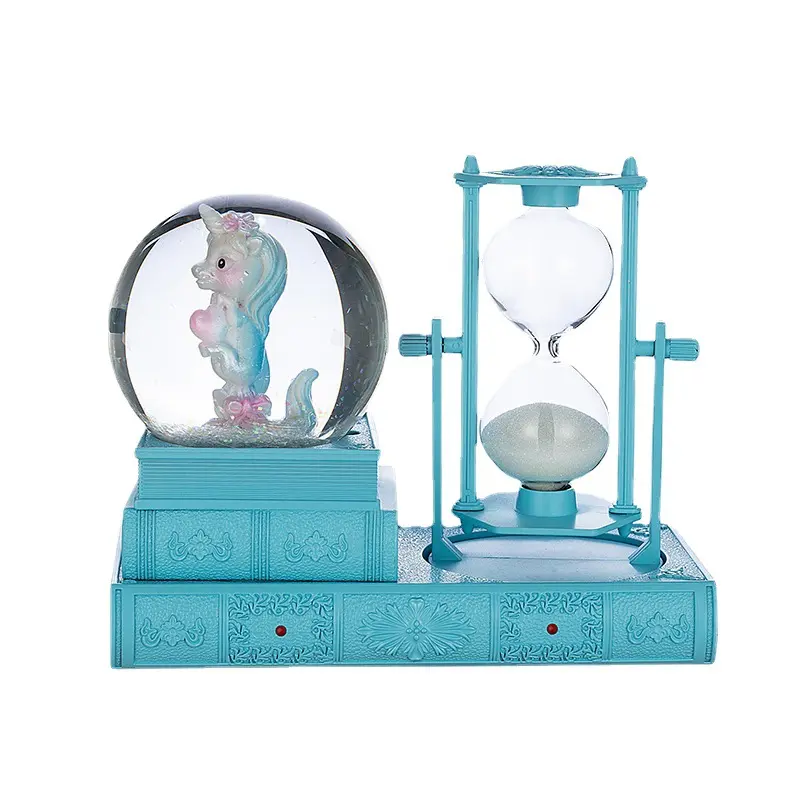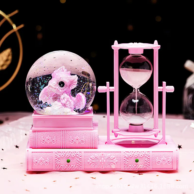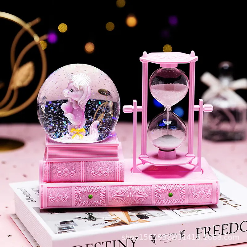 水晶球女孩流沙计时器防摔独角兽音乐盒沙漏客厅酒柜饰品装 饰摆