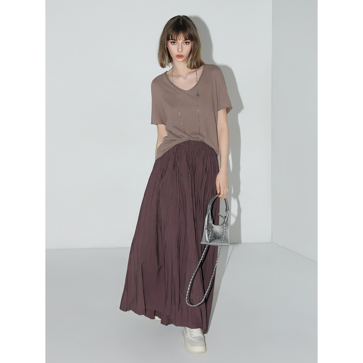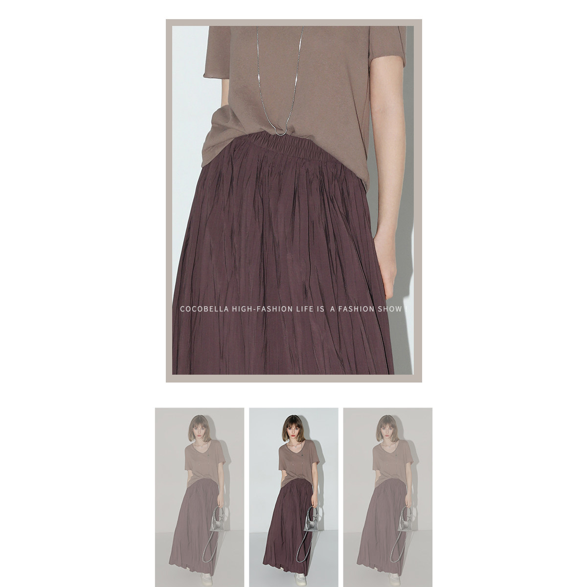 COCOBELLA重工5米压褶大摆半身裙女早春工装 风伞裙遮胯长裙HS7027