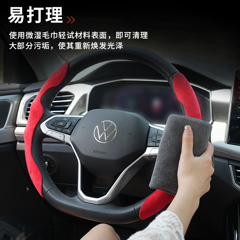方向盘套超薄D型防滑冬季 通用 短绒毛绒麂皮绒把套翻毛皮反毛四季