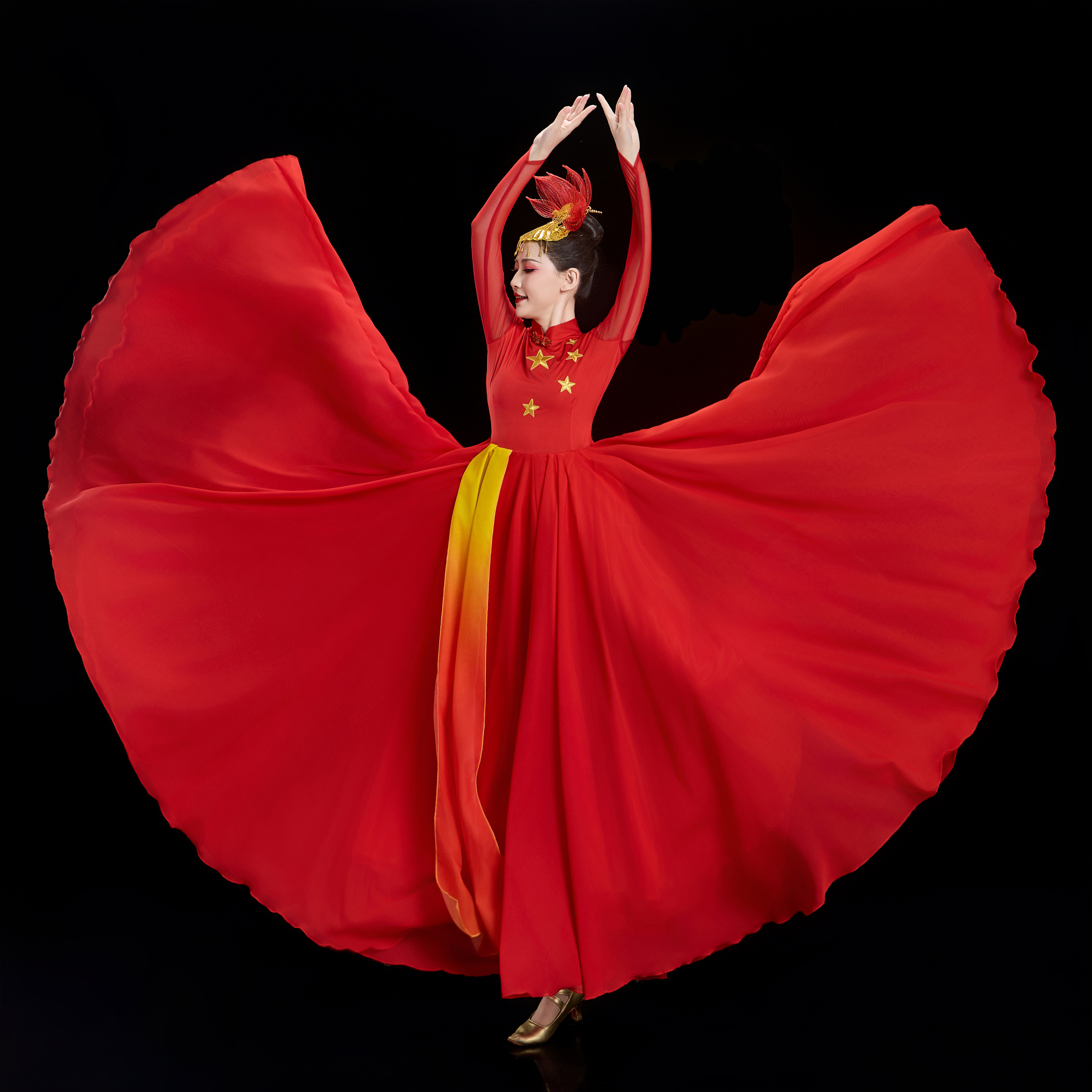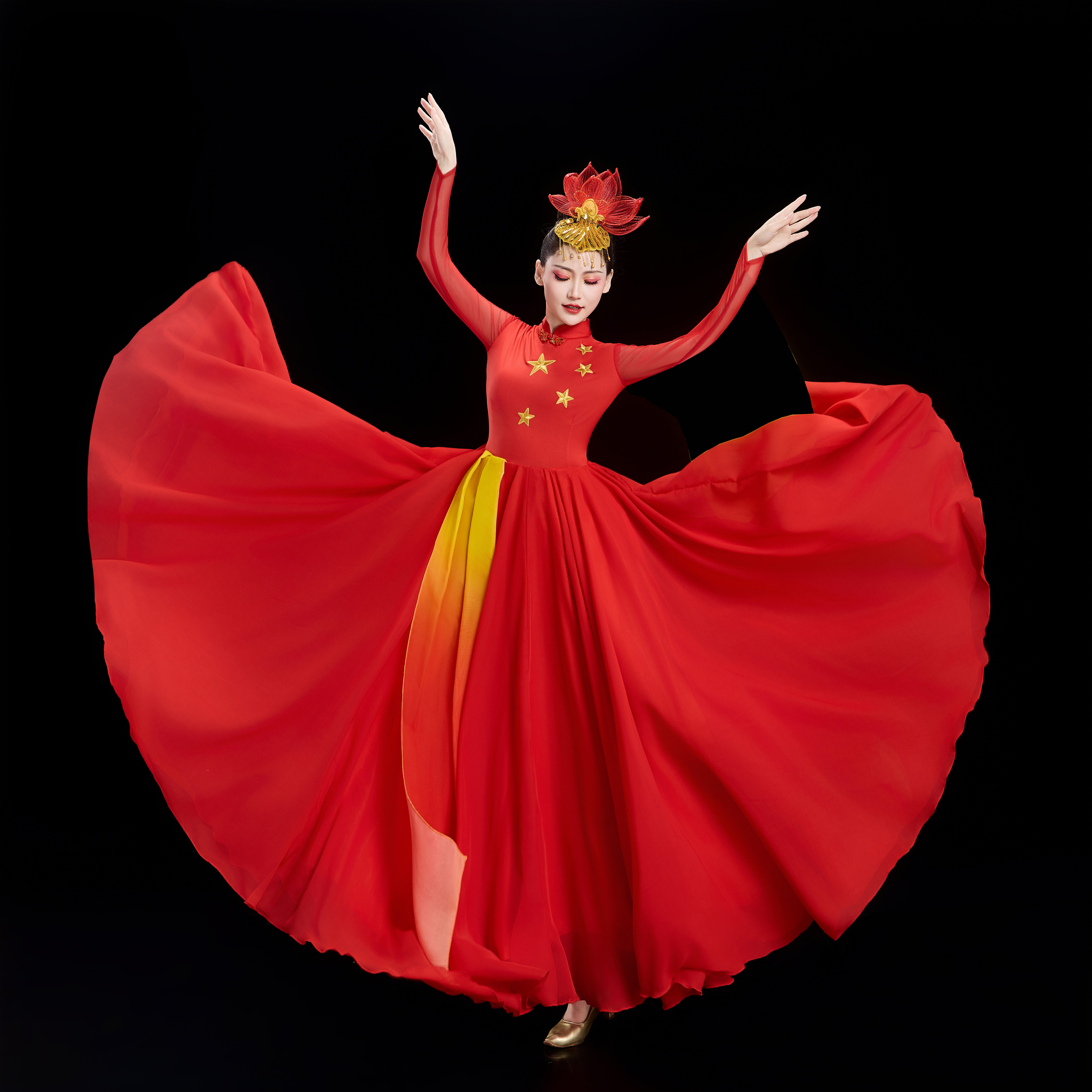 现代大气开场舞大摆裙演出服我和我 表演长裙 祖国大合唱舞蹈服装