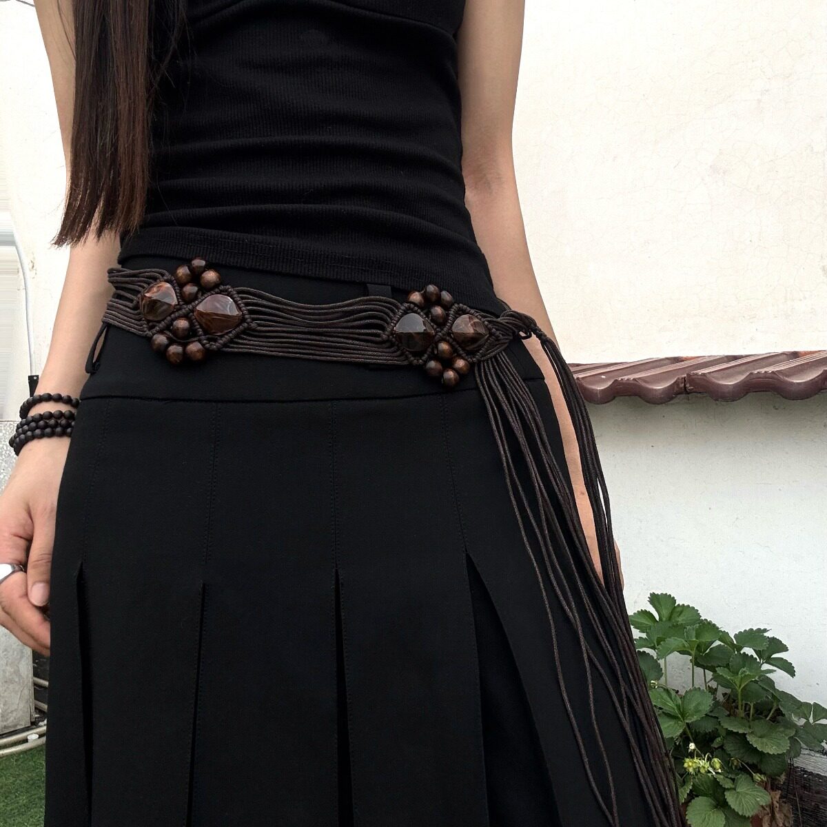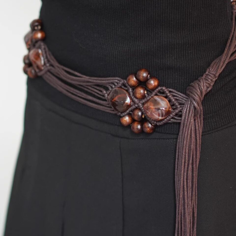 腰带编织高级设计感小众配饰棕色波西米亚民族风腰带女装 饰配裙子