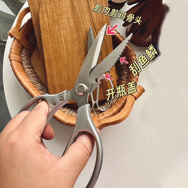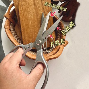 不锈钢剪刀家用厨房剪鸡骨剪子强力剪刀刮鱼鳞剪刀开瓶盖多功能