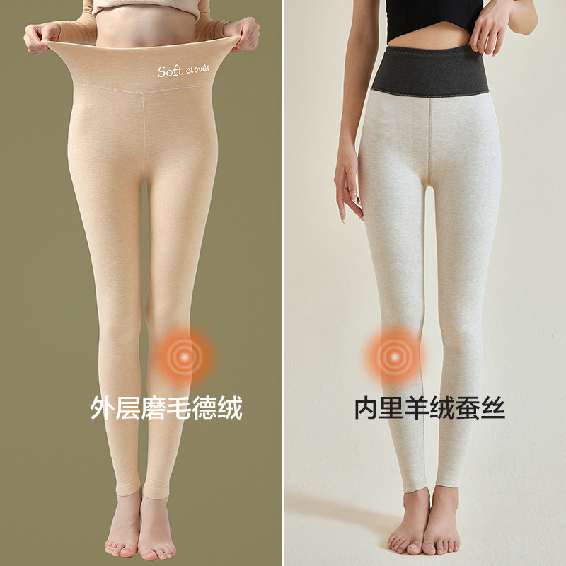 新款 高腰打底裤 秋裤 保暖裤 女秋冬内穿加绒德含羊绒蚕丝加肥加大码