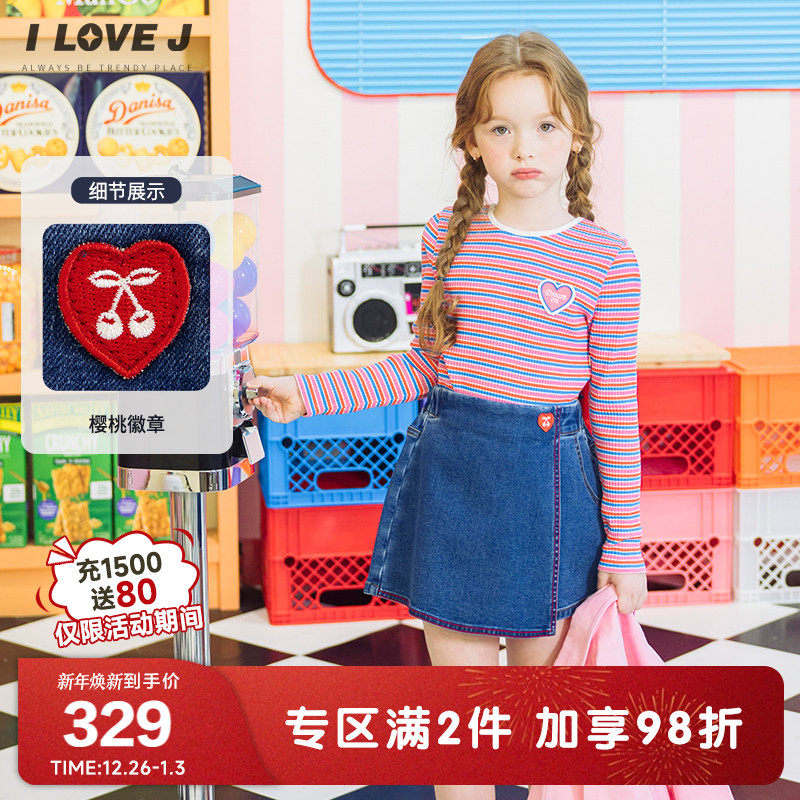 樱桃布贴弹力 女童牛仔半身裙裤 JXSPT26 2025秋季 ILOVEJ韩国童装