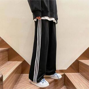 高中学生运动卫裤 男条纹直筒青少年国潮潮牌痞帅长裤 子 休闲裤 美式