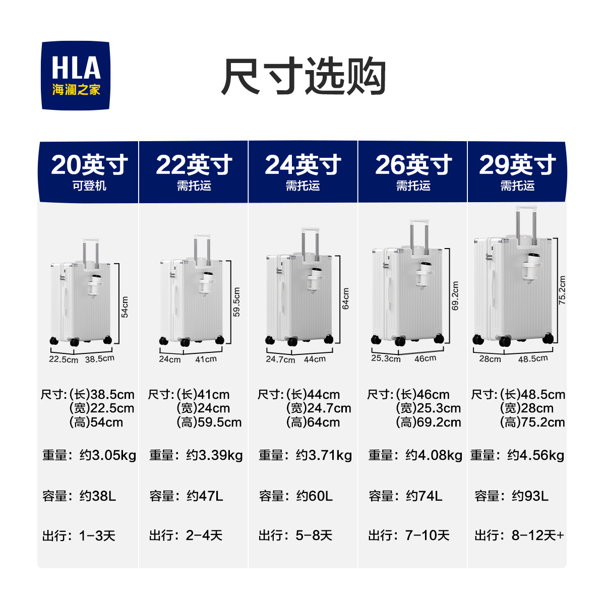 HLA 海澜之家大容量行李箱男拉杆箱女旅行皮箱万向轮24寸托运箱26