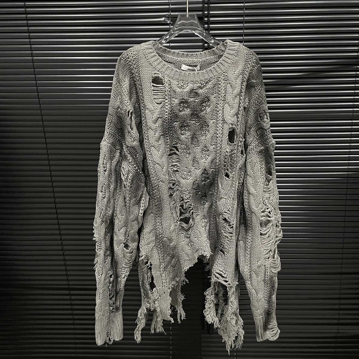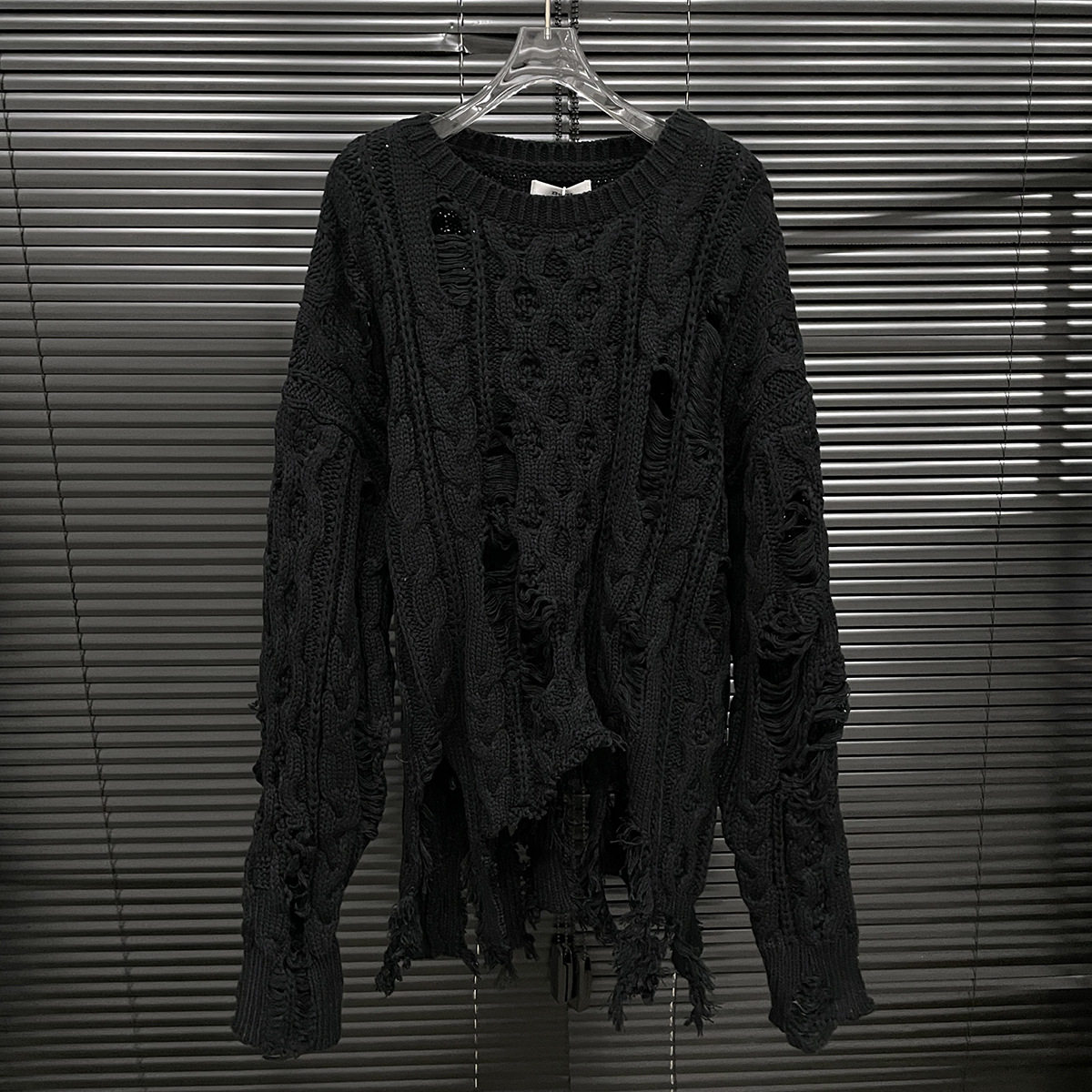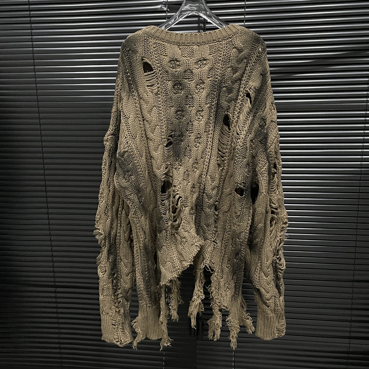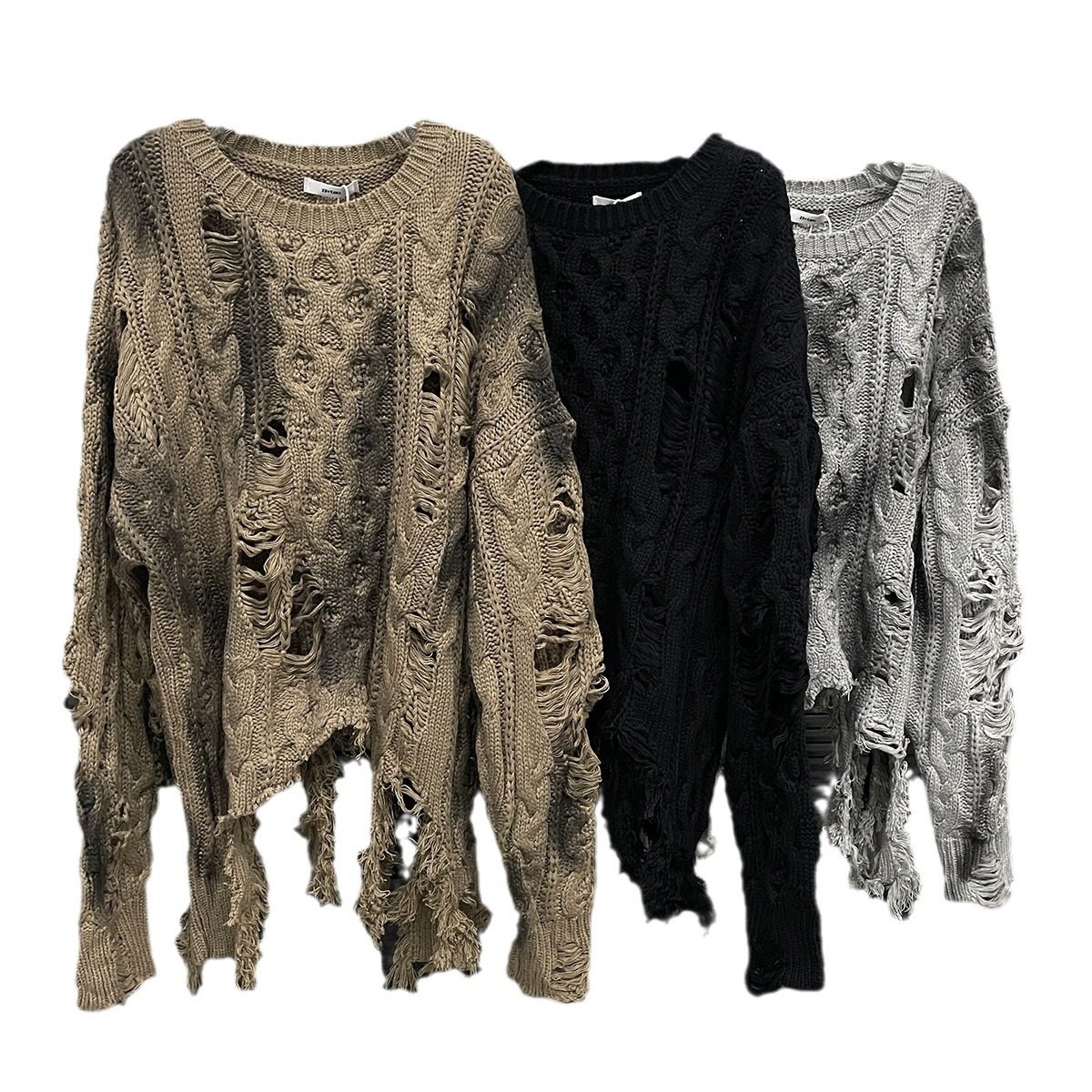 新款 复古不规则破洞毛衣女2025春季 设计感针织上衣 STUDIO美式 EAM