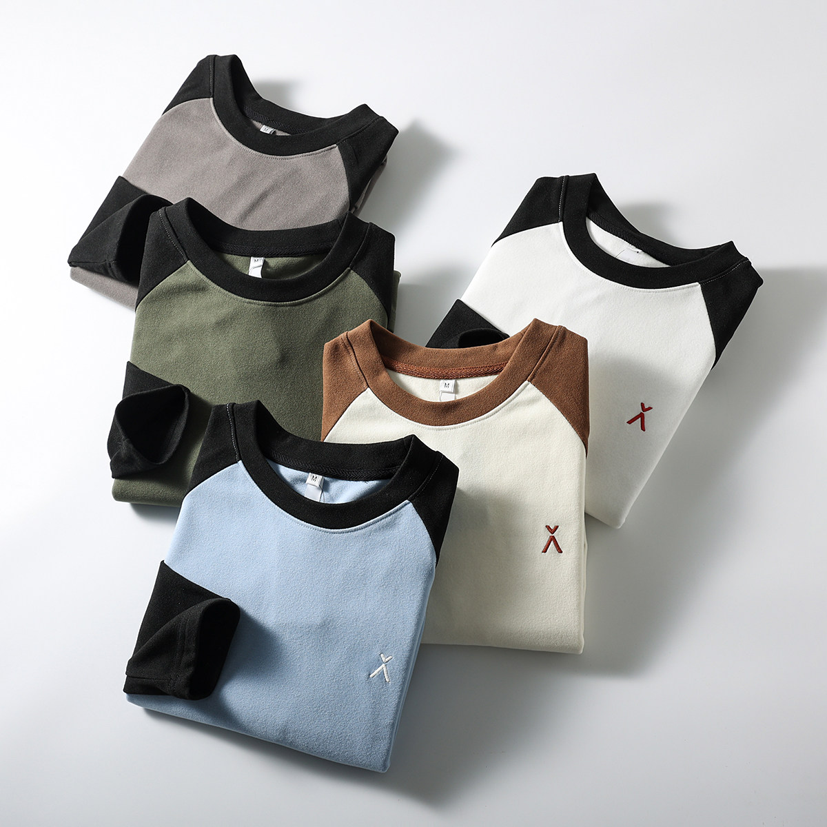 圆领长袖 自发热双面德绒 秋冬男士 立体拼色 打底T恤 细腻软糯