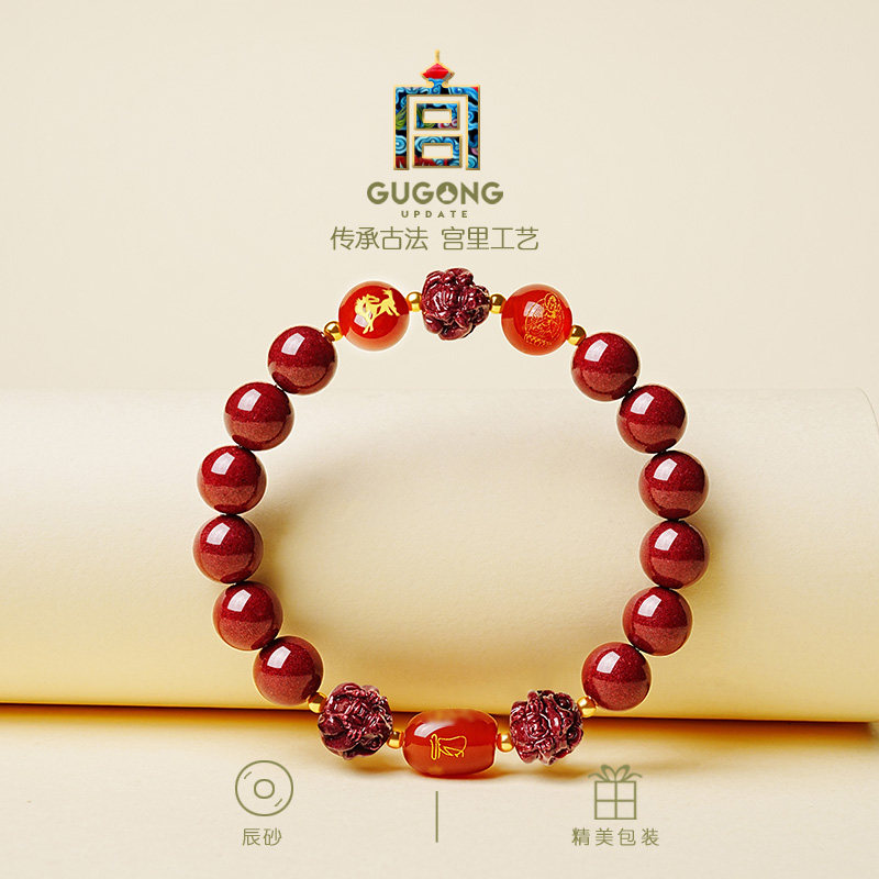 宫里上新朱砂手串男红玛瑙三合马年手链女款 送妈妈本命年礼物 正品