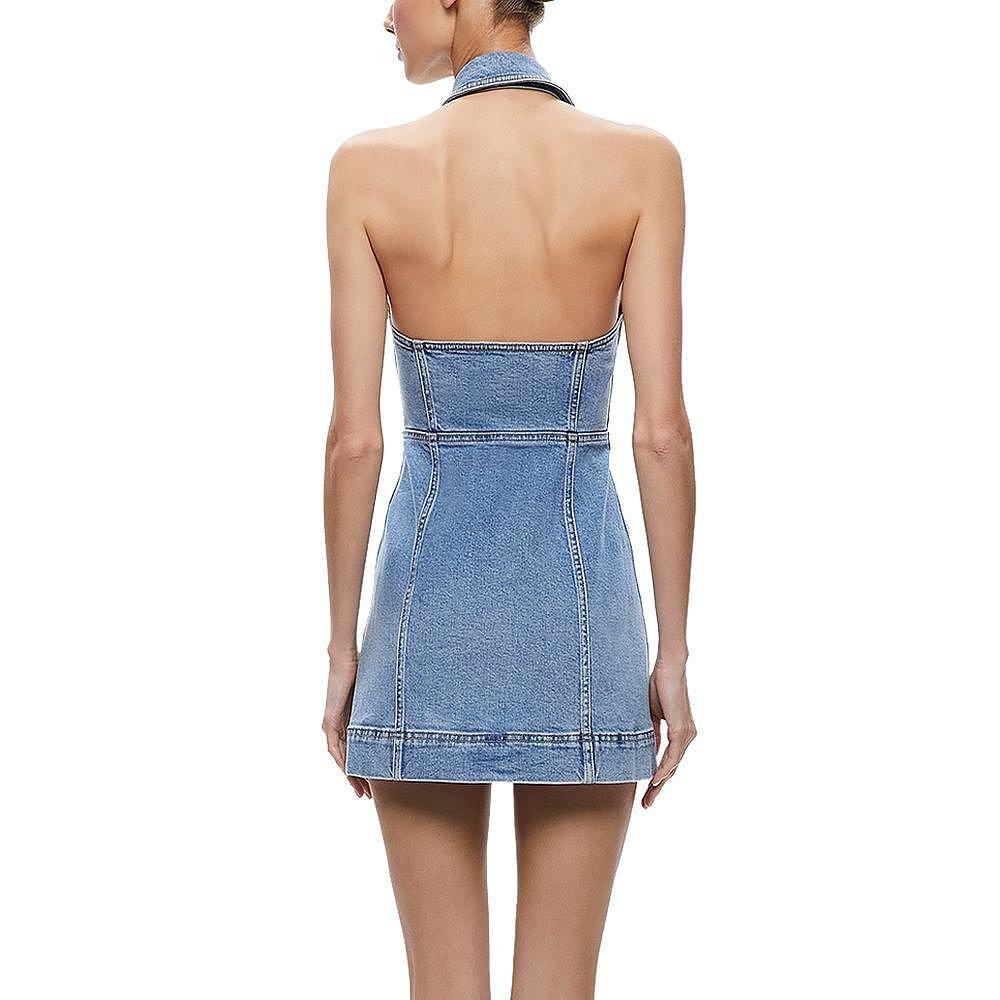 巴塞之花 下蛋喵 盐水蓝镂空提花包臀露背度假连衣裙 Cat Mummy