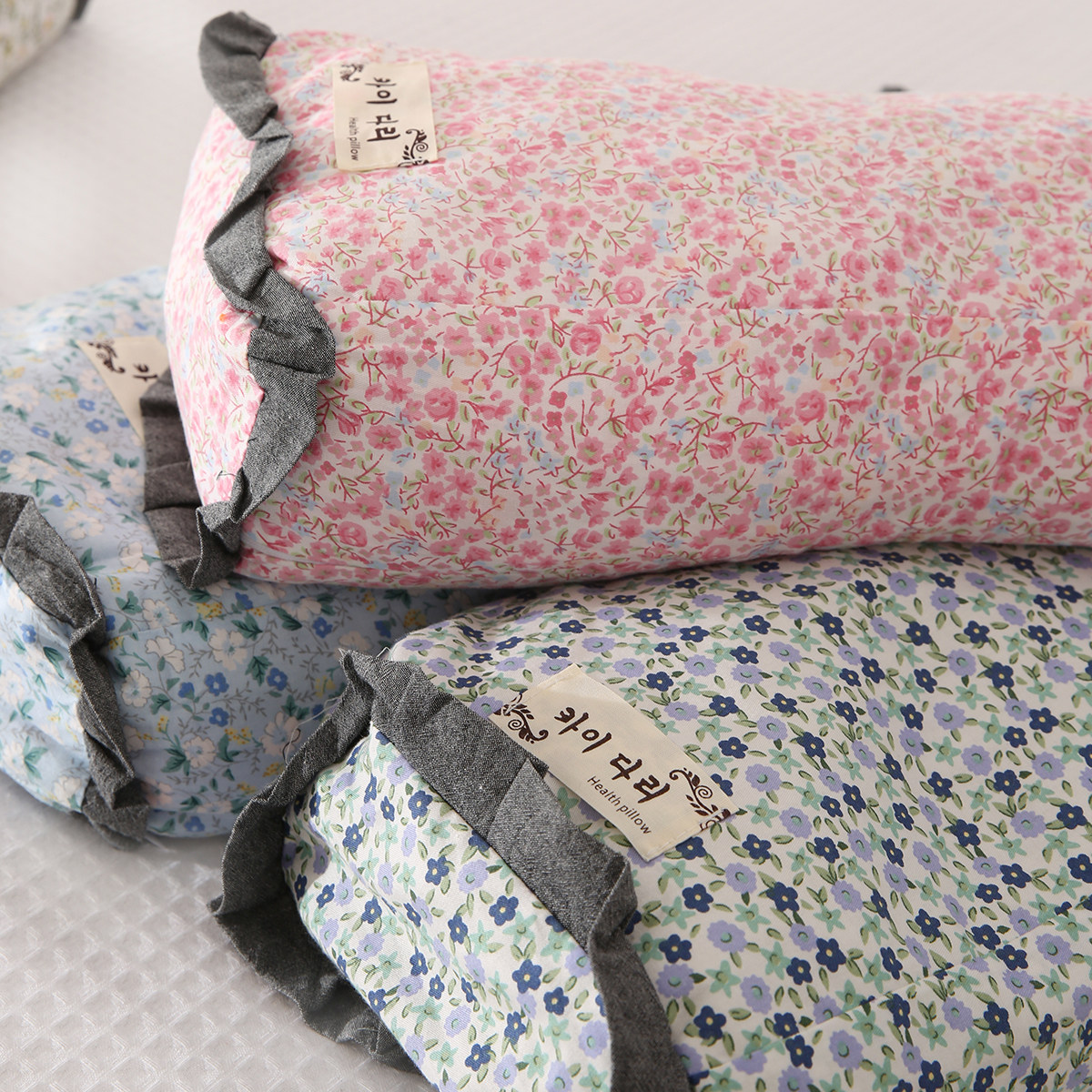 韩国碎花荞麦壳枕头新款 小蛮腰枕颈椎枕木耳边纯棉单人枕学生硬枕