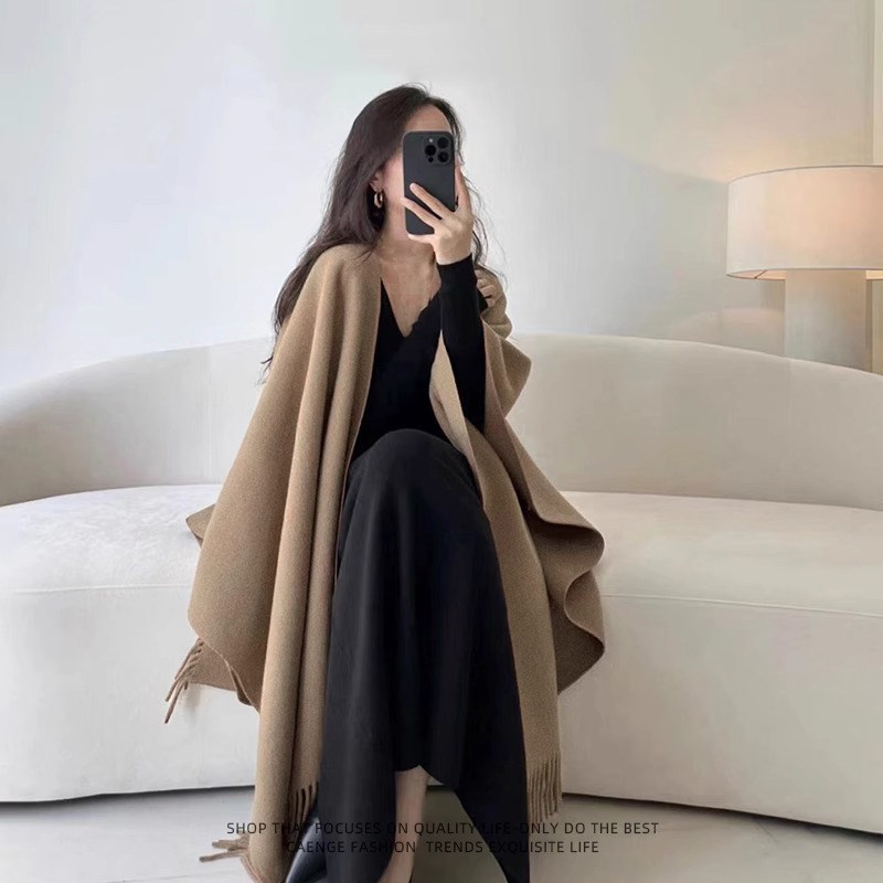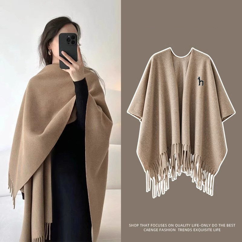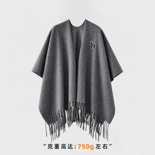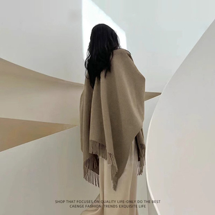 哈吉斯船长燕麦色大披肩外搭女士披风斗篷冬季 保暖护肩颈围巾 新款