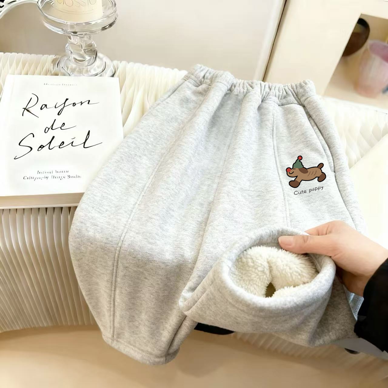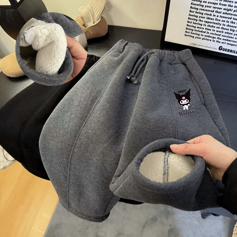 男女童宝宝加绒保暖弯刀裤 儿童裤 卡通印花宽松休闲裤 新款 子秋冬季