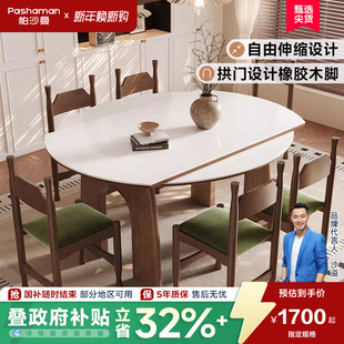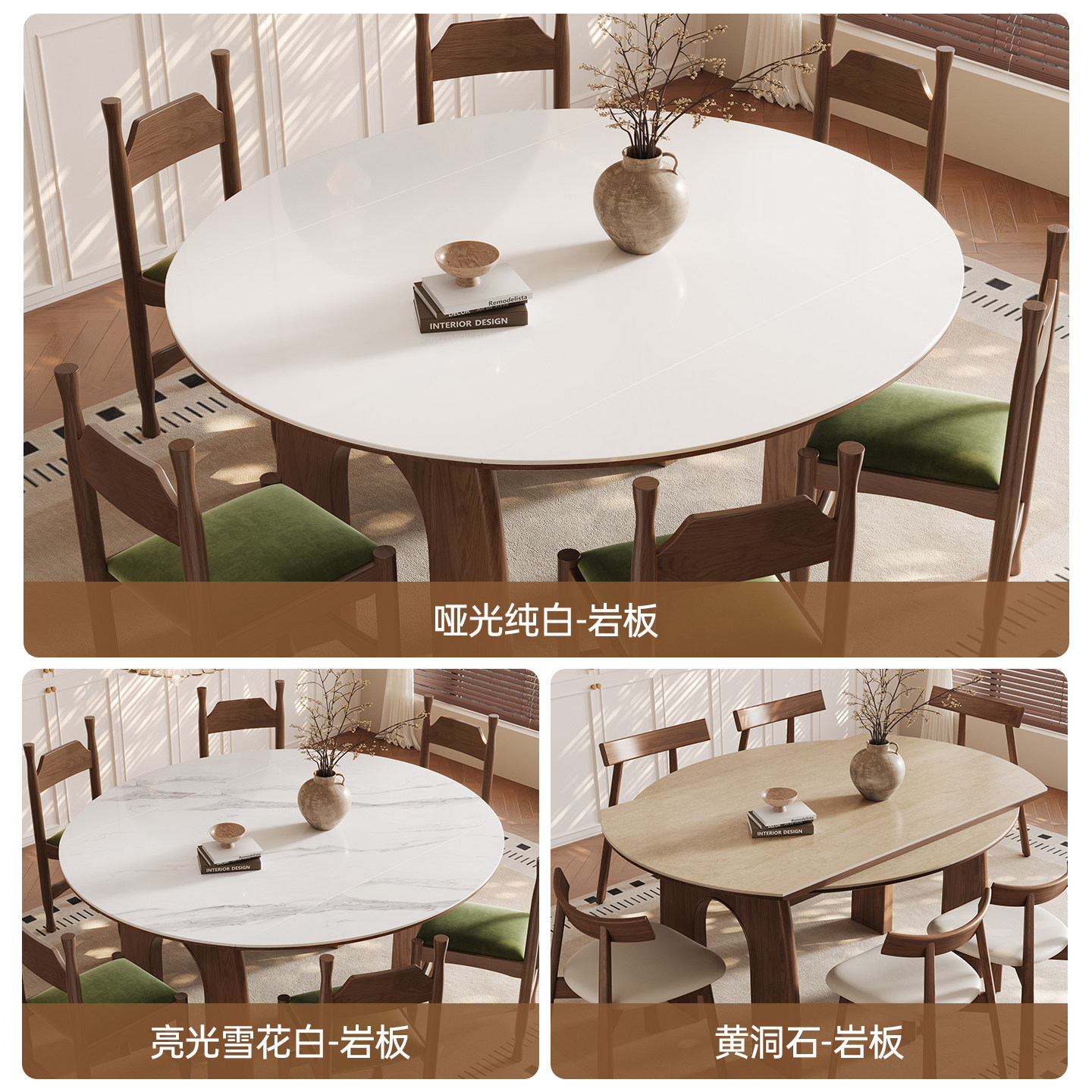 实木岩板餐桌2025新款 桌子客厅家用小户型吃饭桌轻奢伸缩可变圆桌