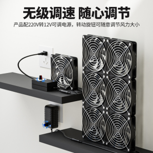12cm大风量高转速散热风扇低噪机柜家用室内窗户排气扇12V调速
