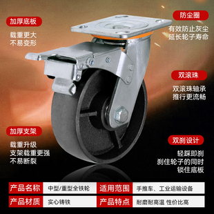 重型万向轮轮子静音承重滚轮刹车定向转向轮推车脚轮滑轮移动底座