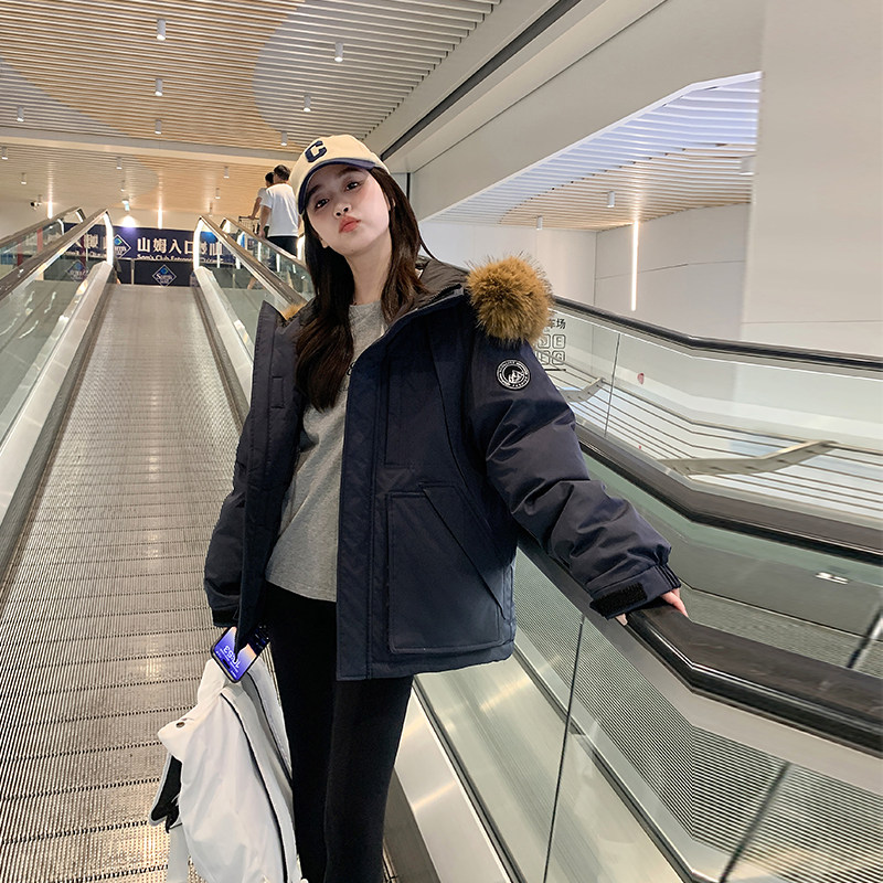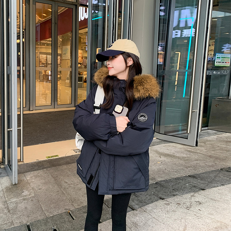 慵懒风派克服棉服 藏青色复古加厚夹棉连帽外套女胖mm美式 大码 女装