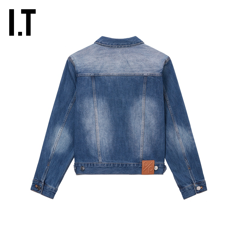 时髦休闲珠饰缀饰水洗磨白外套 翻领牛仔夹克新款 PortsPURE女装