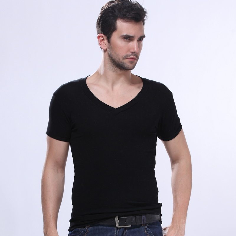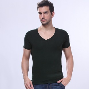 潮流纯色小衫 t恤韩版 青年夏季 黑白色衣服男修身 夏装 打底衫 V领短袖