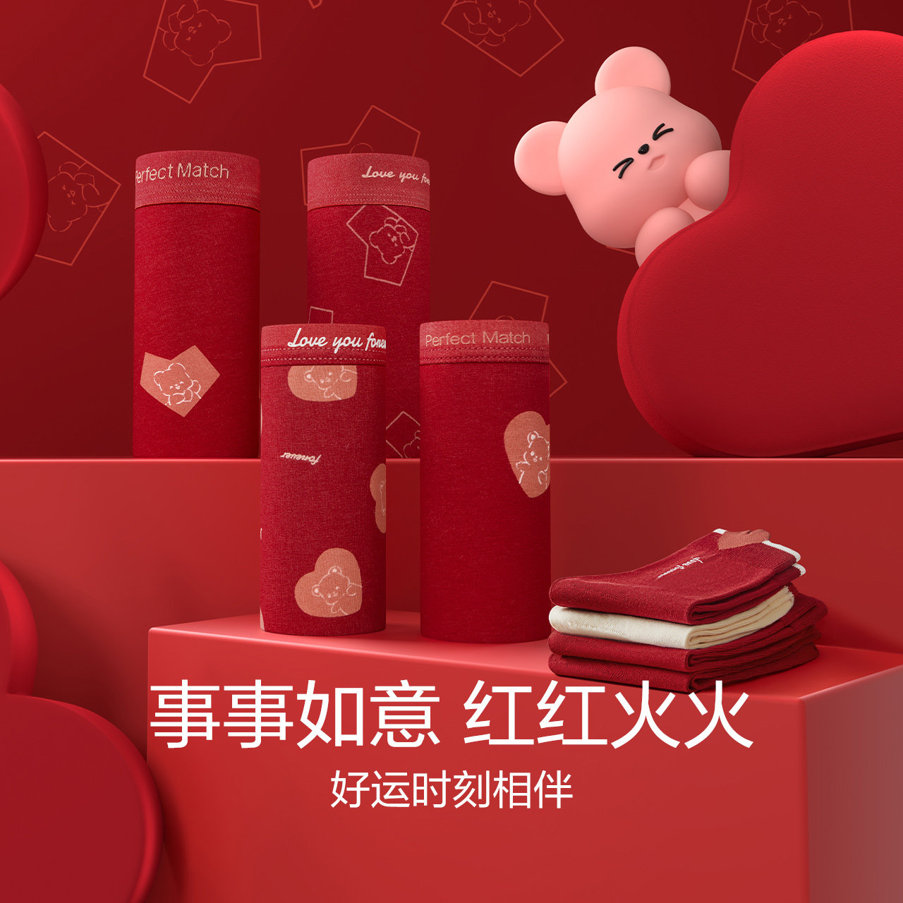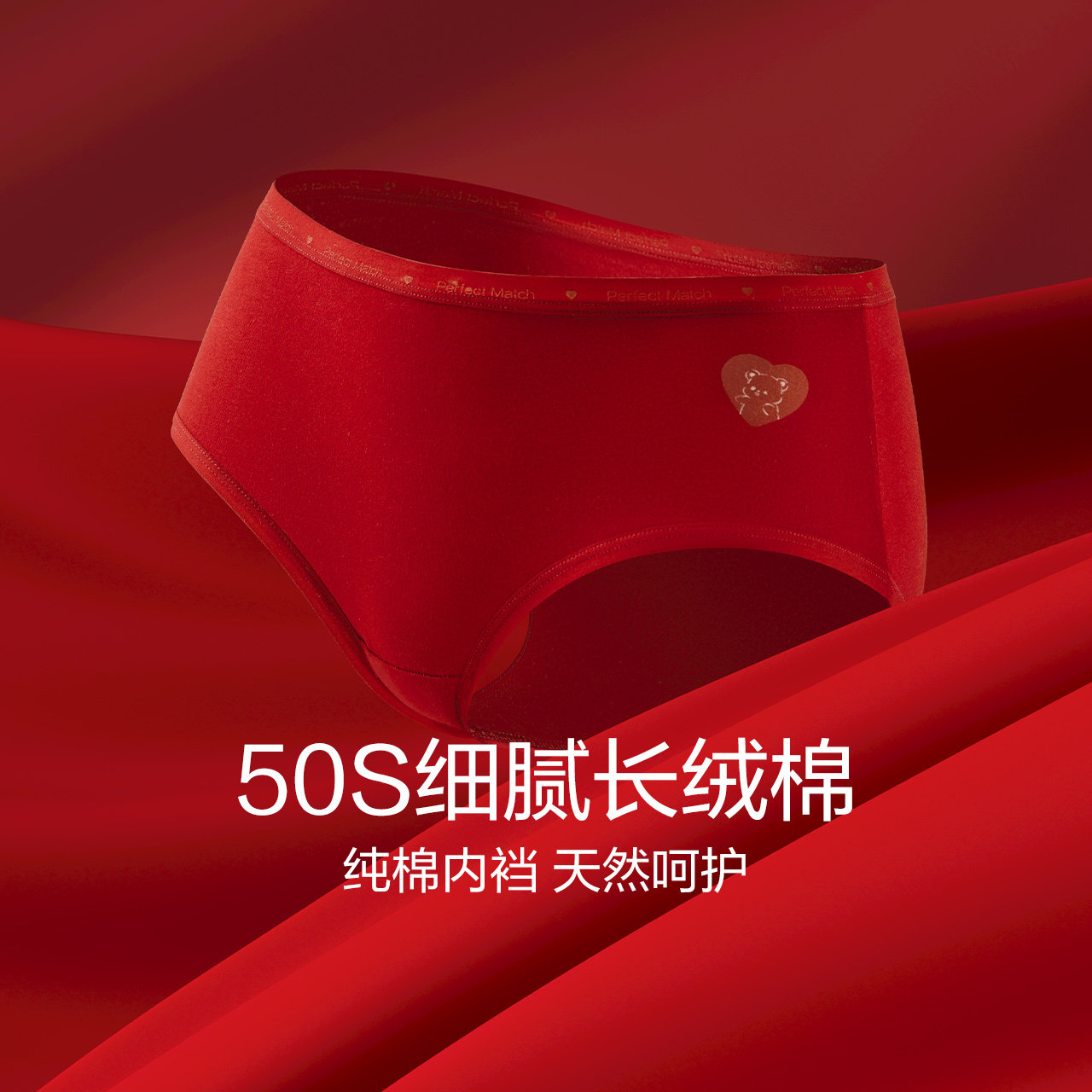 运动性感三角裤 纯棉透气裆不夹美式 红色 蕉内银皮301S女士内裤 3件