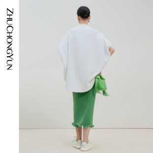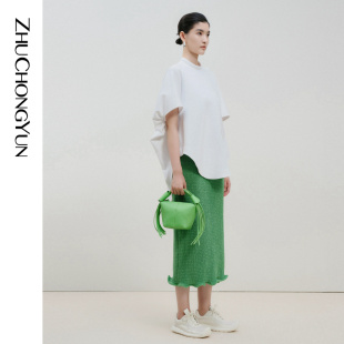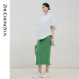 ZHUCHONGYUN春季 通勤波浪设计感半身裙 碧绿色时尚