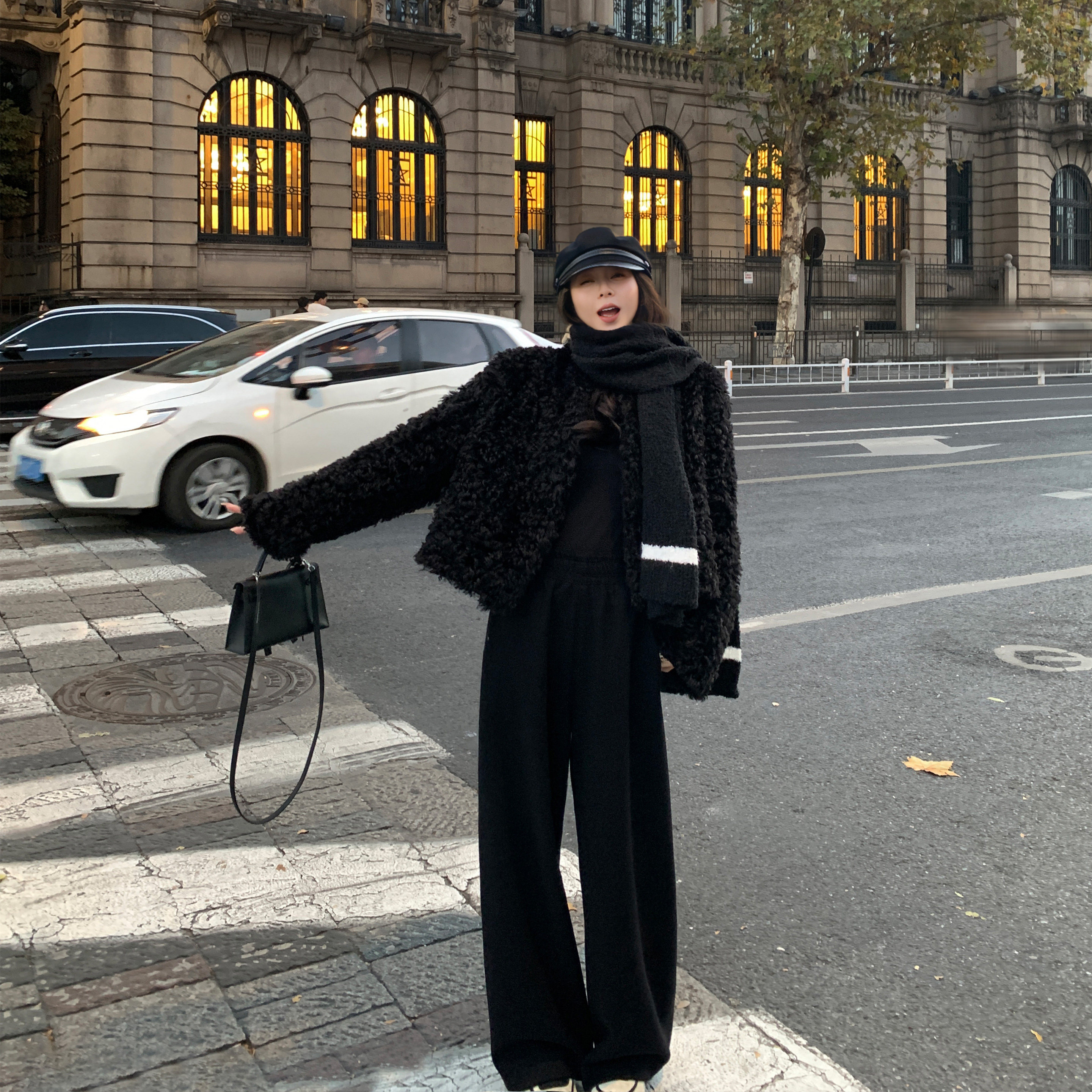 垂感毛呢直筒阔腿休闲裤 高腰显瘦休闲裤 软糯女新款 子 加绒