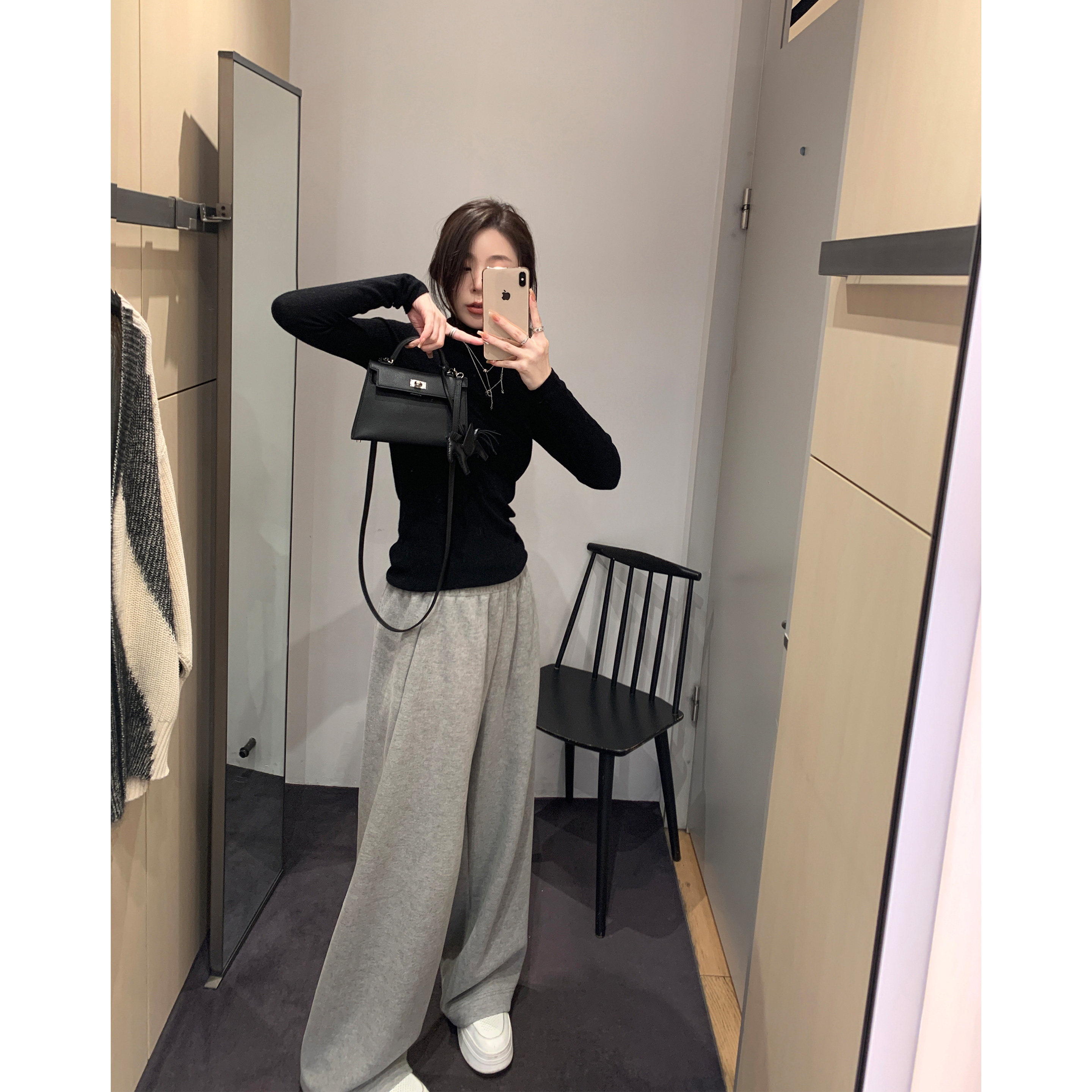 显瘦垂感拖地卫裤 修身 女春季 橘子树在哪儿腰头撞色休闲弹力喇叭裤