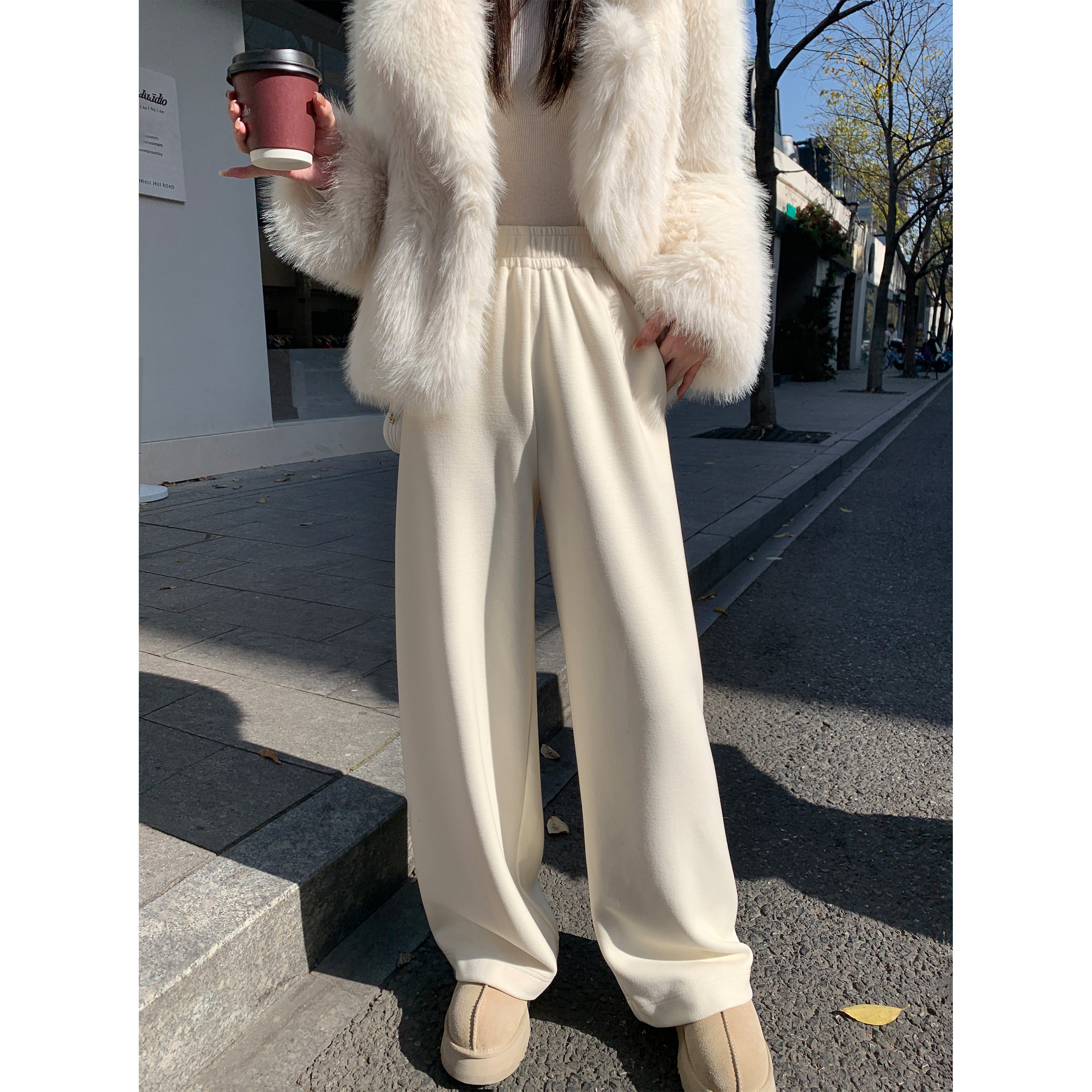 女冬季 白色直筒裤 新款 休闲长裤 子 宽松阔腿运动裤 SIINSIIN加绒卫裤