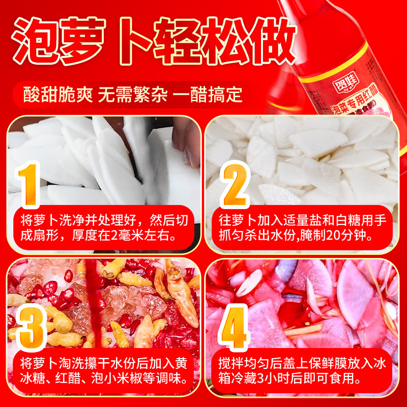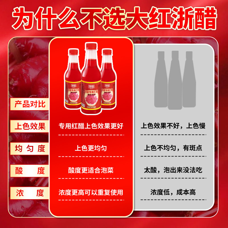 泡菜专用红醋家用瓶装 腌萝卜胭脂萝卜大红浙醋泡萝卜商用蘸虾蟹料