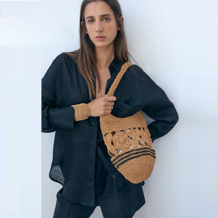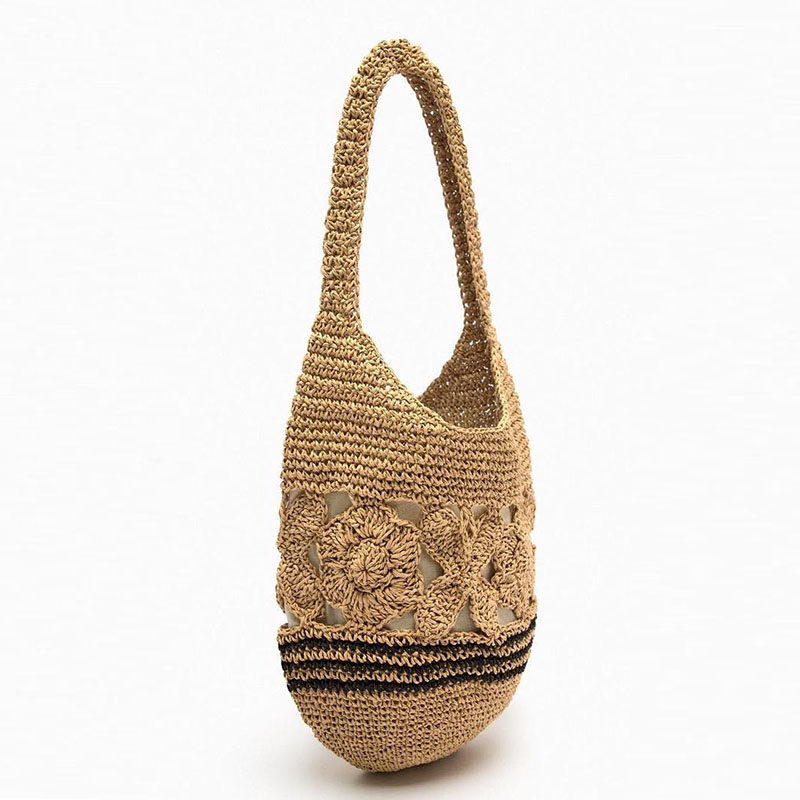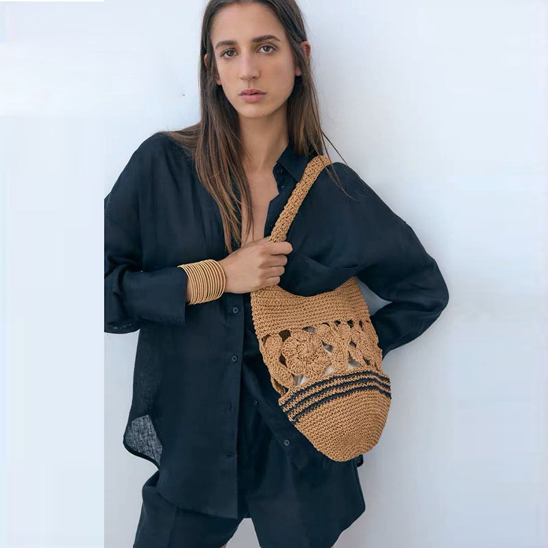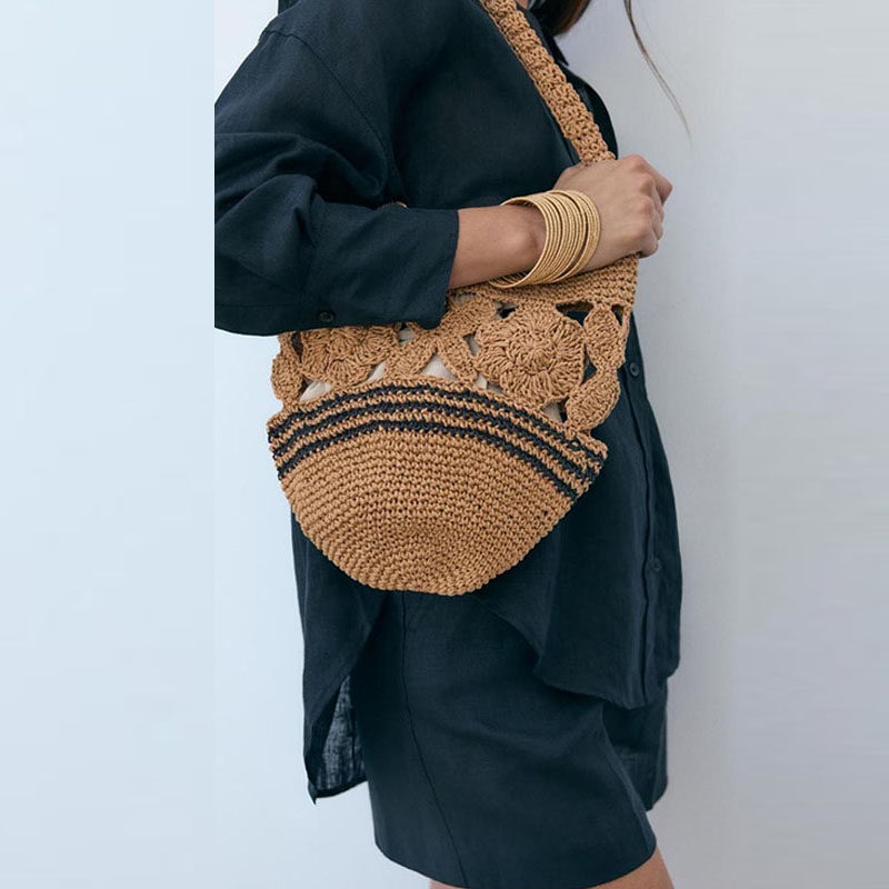 单肩法式 镂空花朵草包编织包休闲度假沙滩包百搭女包包 草编包新款