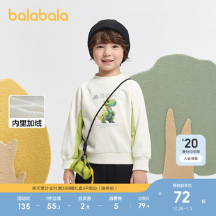 巴拉巴拉童装 儿童卫衣男童秋冬加绒内搭恐龙印花潮酷户外上衣流行
