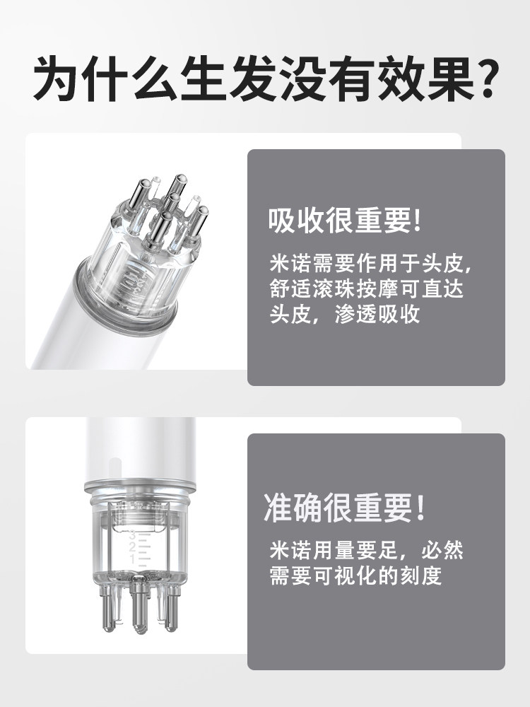 米诺头皮上药器头部滚珠按摩精华导入梳地尔生发液育发液给药器